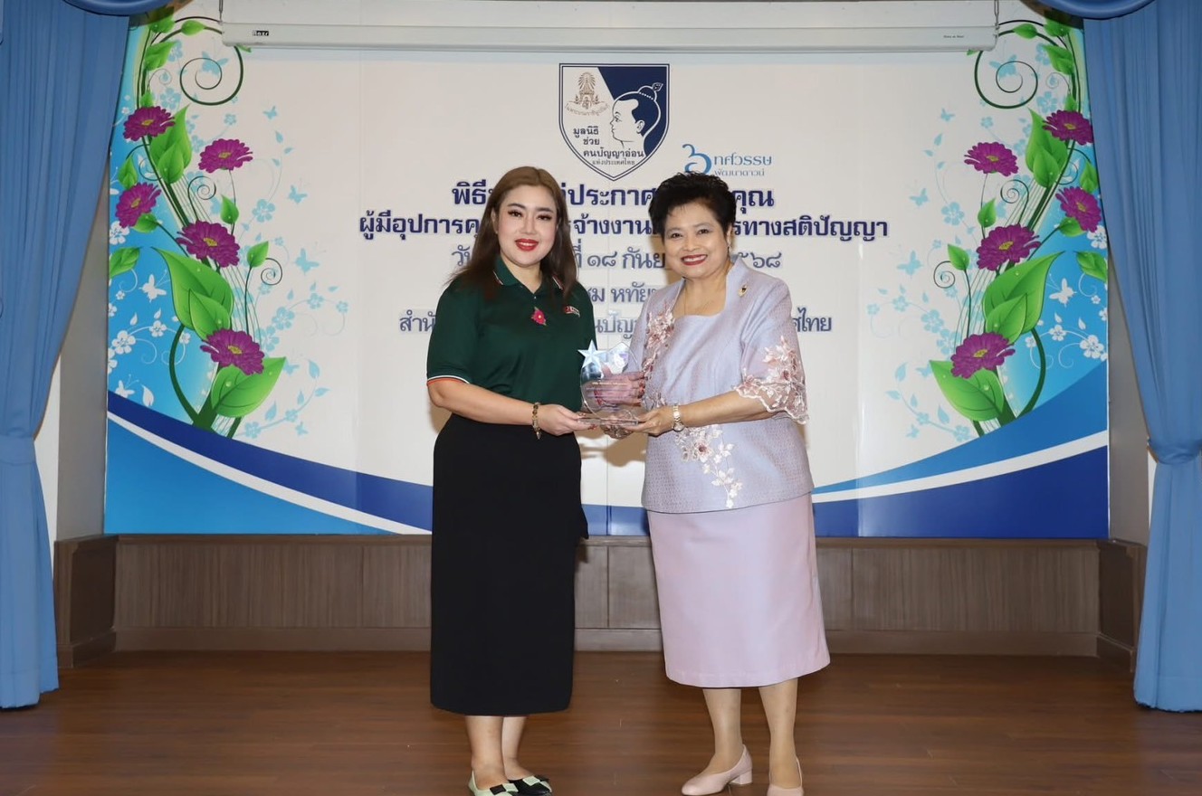 คุณพิมพ์ปุณยาพร ศิรินราอัครโยธิน ผู้จัดการแผนกทรัพยากรมนุษย์ บริษัท ฑีฆาก่อสร้าง จำกัด (มหาชน) รับโล่ประกาศเกียรติคุณ จาก ดร.สายสม วงศาสุลักษณ์ ประธานมูลนิธิช่วยคนปัญญาอ่อนแห่งประเทศไทย ในพระบรมราชูปถัมภ์ ในฐานะองค์กรที่เห็นความสำคัญของผู้พิการ โดยเป็นผู้มีอุปการคุณในการจ้างงานคนพิการทางสติปัญญา ตามมาตรา 35 ให้ทำงานในหน่วยงานของมูลนิธิ ฯ ทำให้ผู้พิการทางสติปัญญาเกิดความภาคภูมิใจที่สามารถประกอบอาชีพช่วยเหลือตนเองและครอบครัวได้เป็นอย่างดี งานดังกล่าวจัดขึ้น ณ หอประชุมหทัยนเรศวร์ ชั้น 7 สำนักงานมูลนิธิช่วยคนปัญญาอ่อนแห่งประเทศไทย ในพระบรมราชินูปถัมภ์